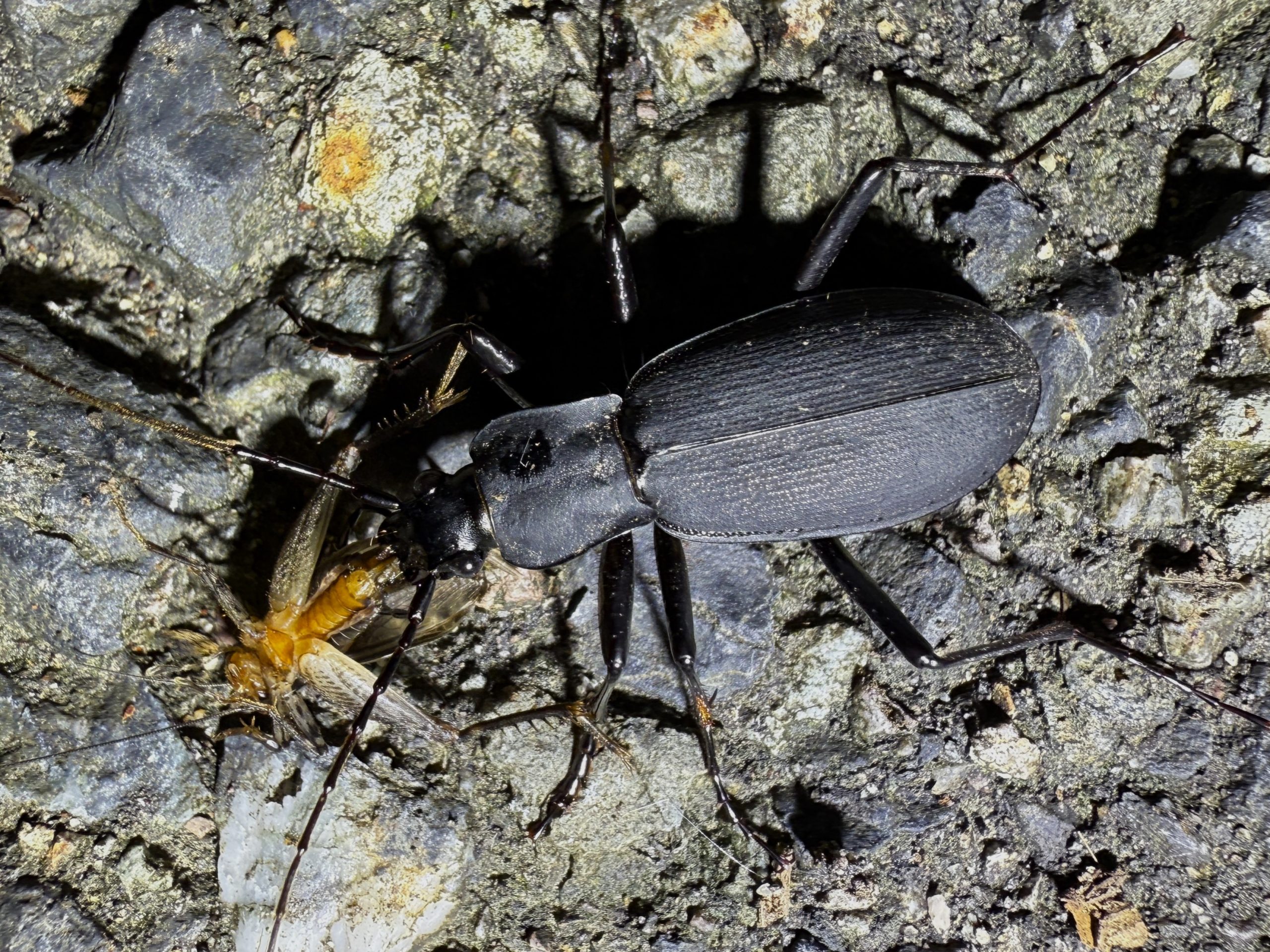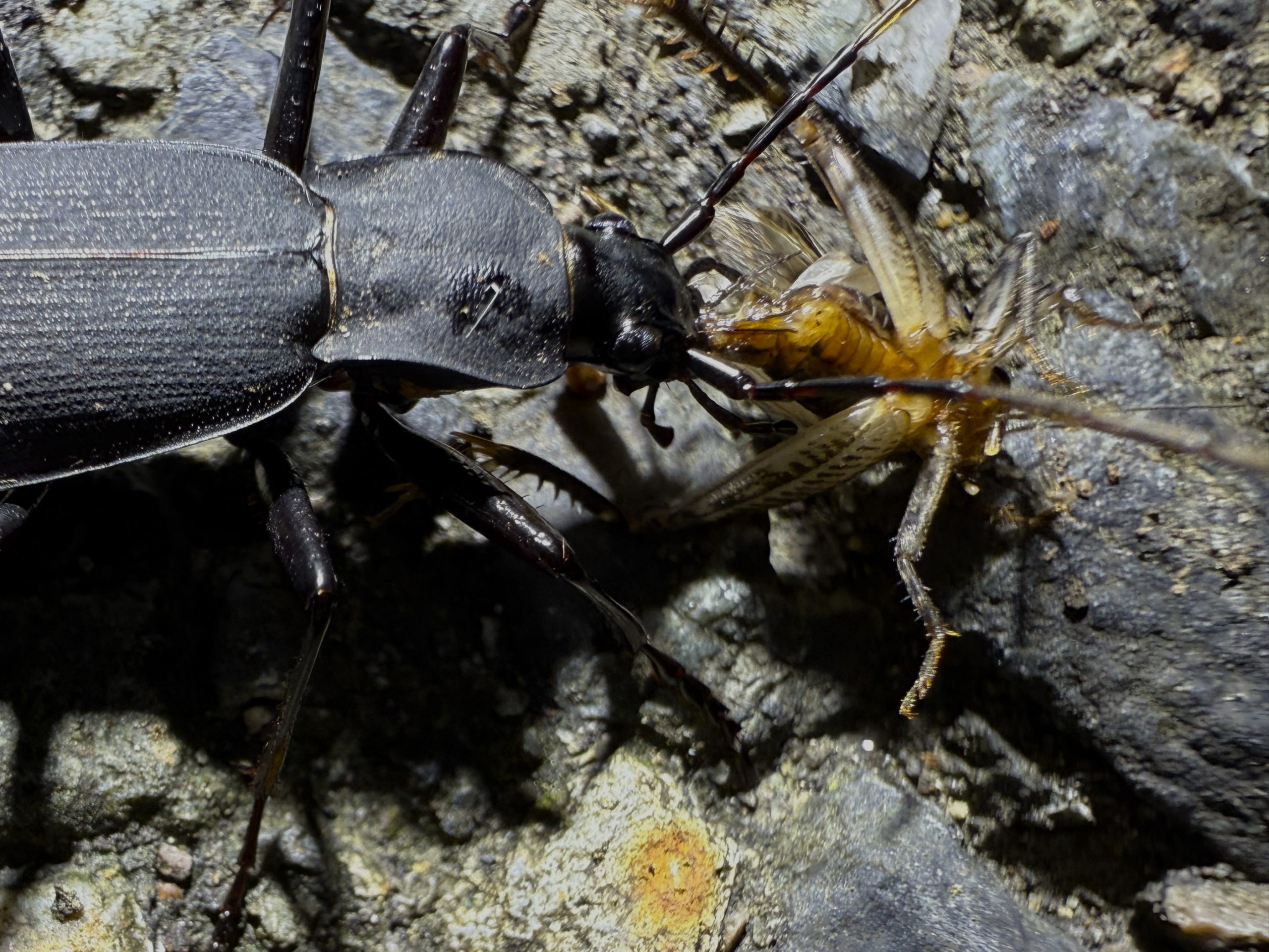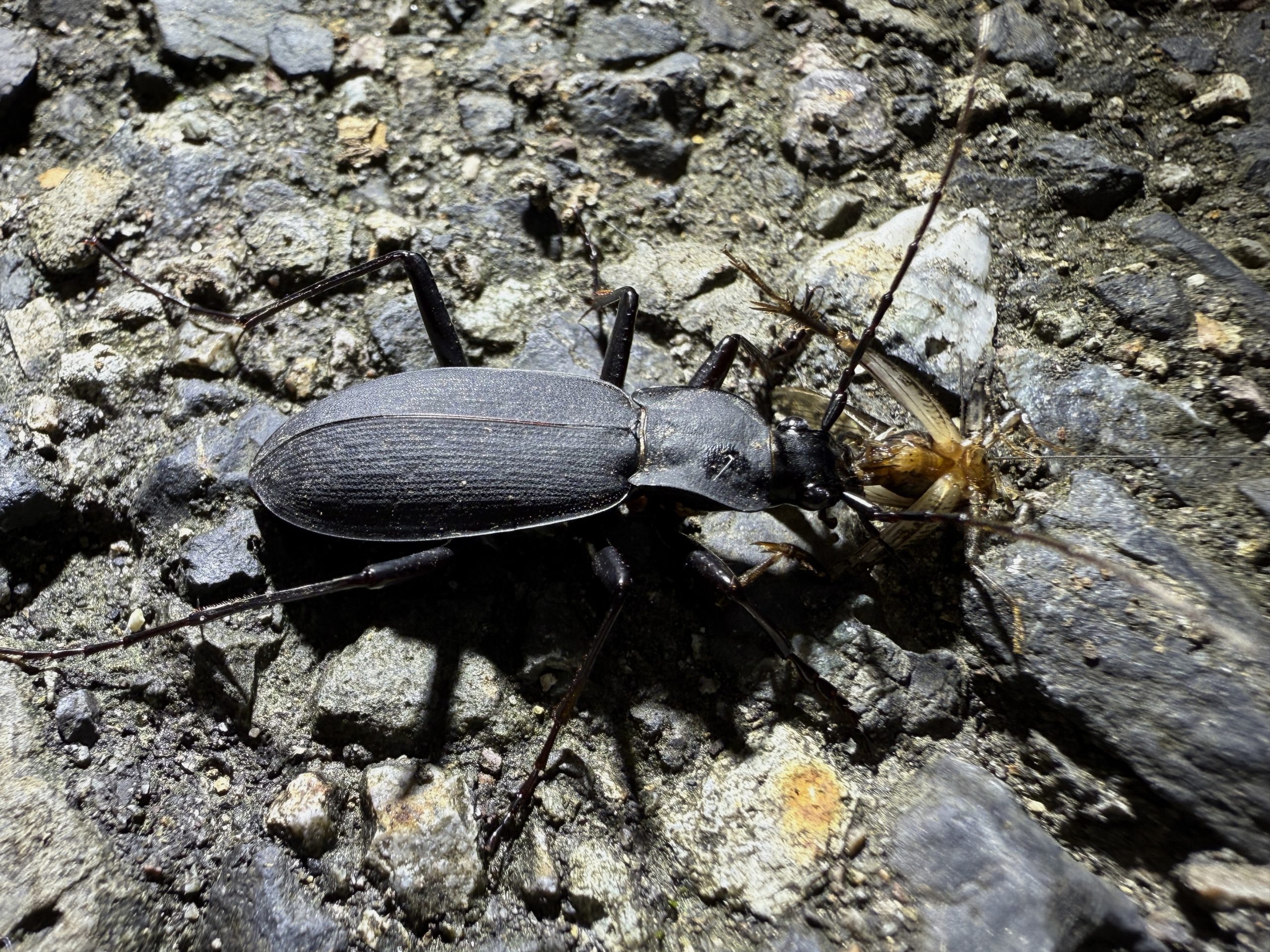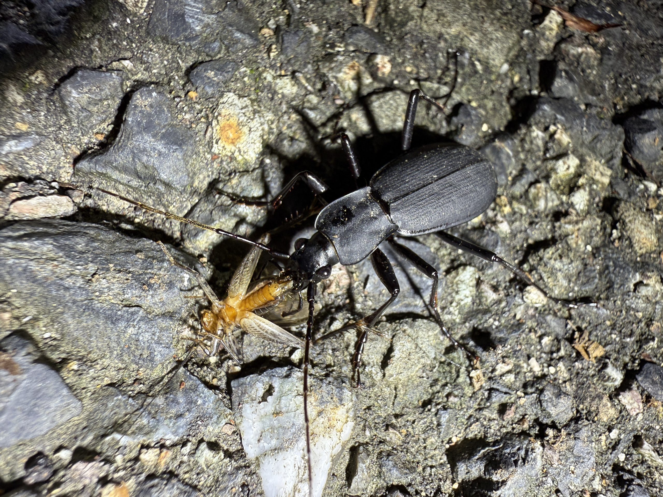 クロナガオサムシ 2025年 兵庫県但馬地区の標高1000m付近の山中にて、ライトトラップ中に蛾などを捕食に数匹がやってきた。人が捕食中の昆虫に触れても、取られまいと噛んだまま逃げる強者です。 分布:本州~九州 体長:25mm~35mm コメントを残す コメントをキャンセルメールアドレスが公開されることはありません。 ※ が付いている欄は必須項目ですコメント ※ 名前 ※ メール ※ サイト 次回のコメントで使用するためブラウザーに自分の名前、メールアドレス、サイトを保存する。 数字で答えを入力してください:1 + one =
