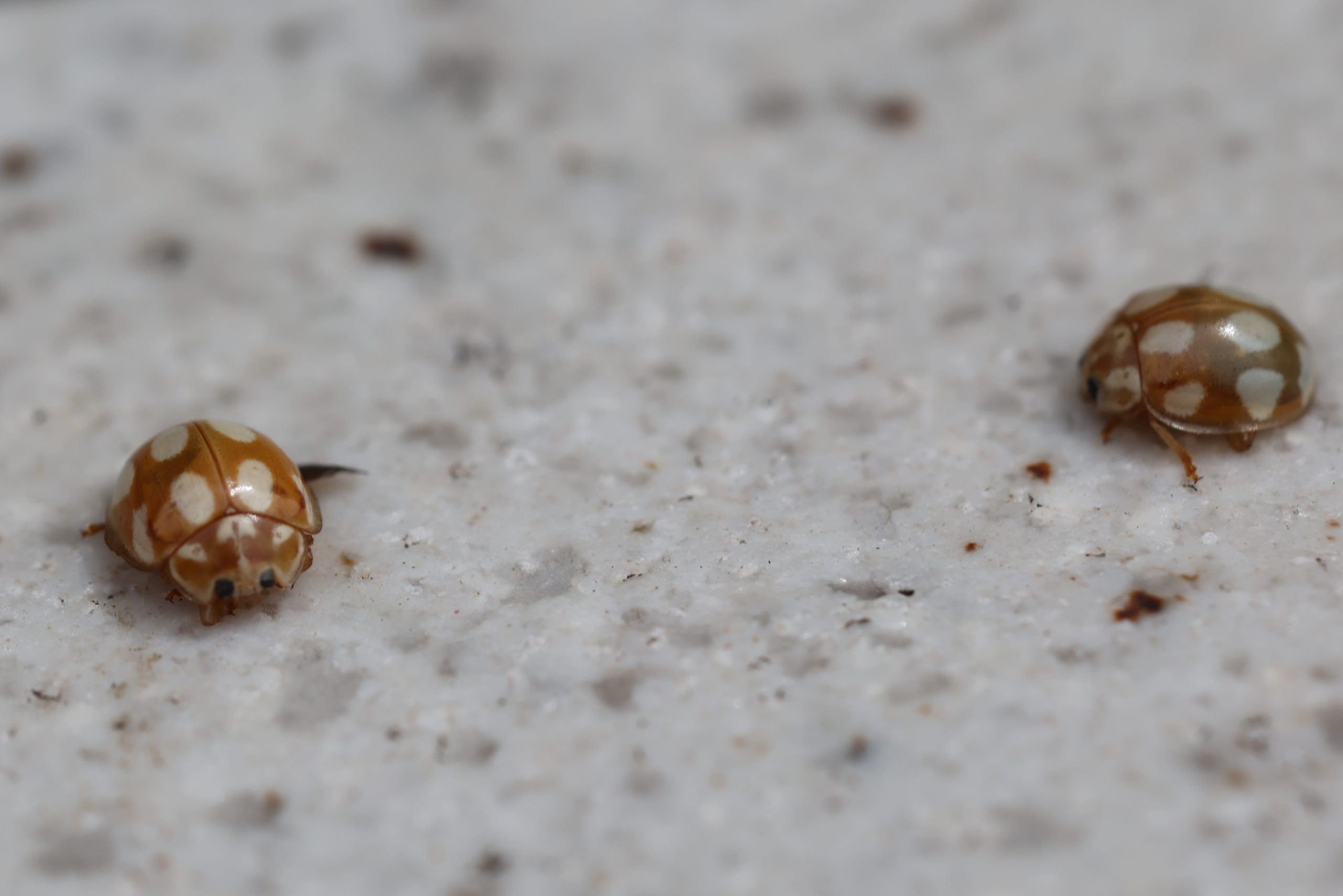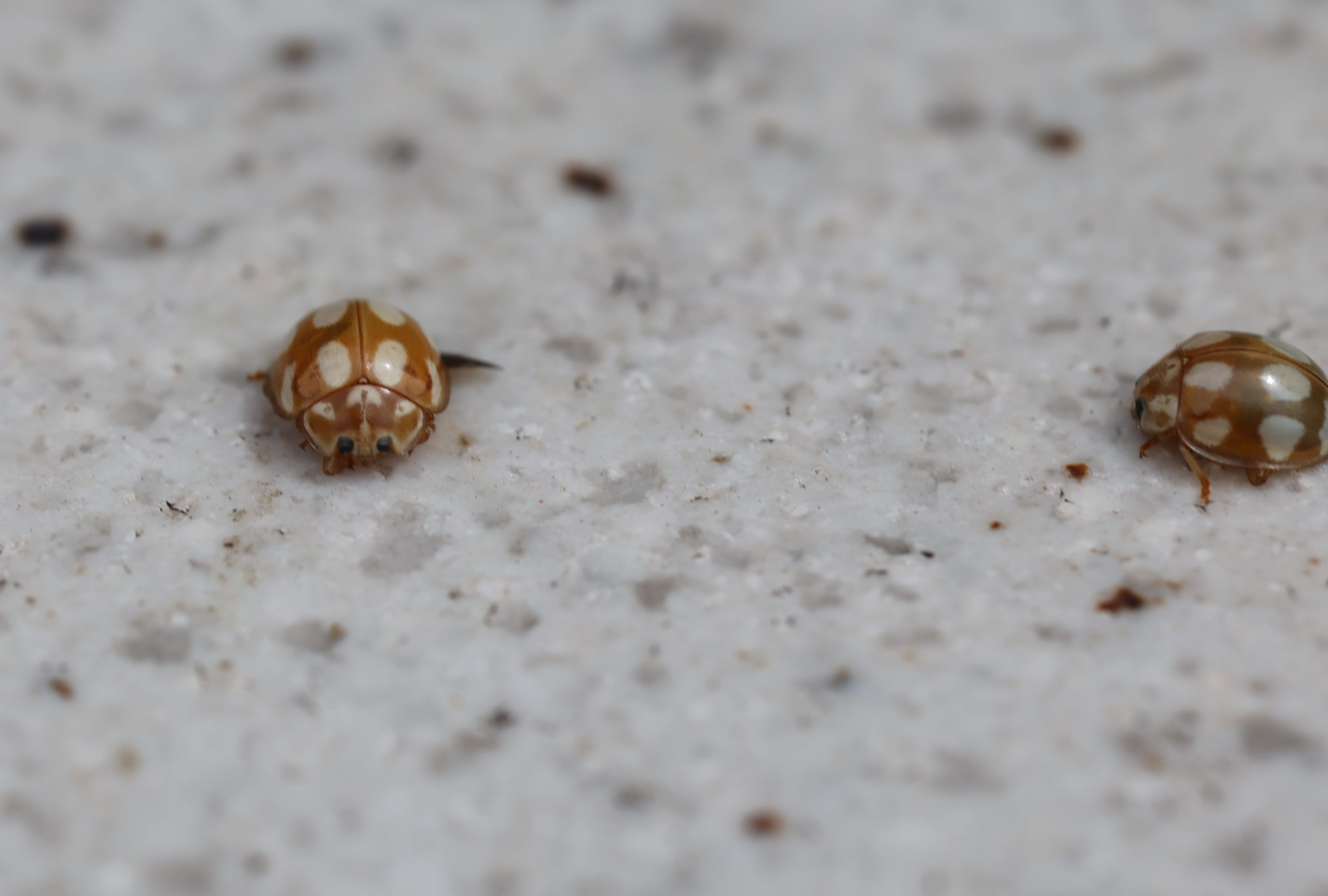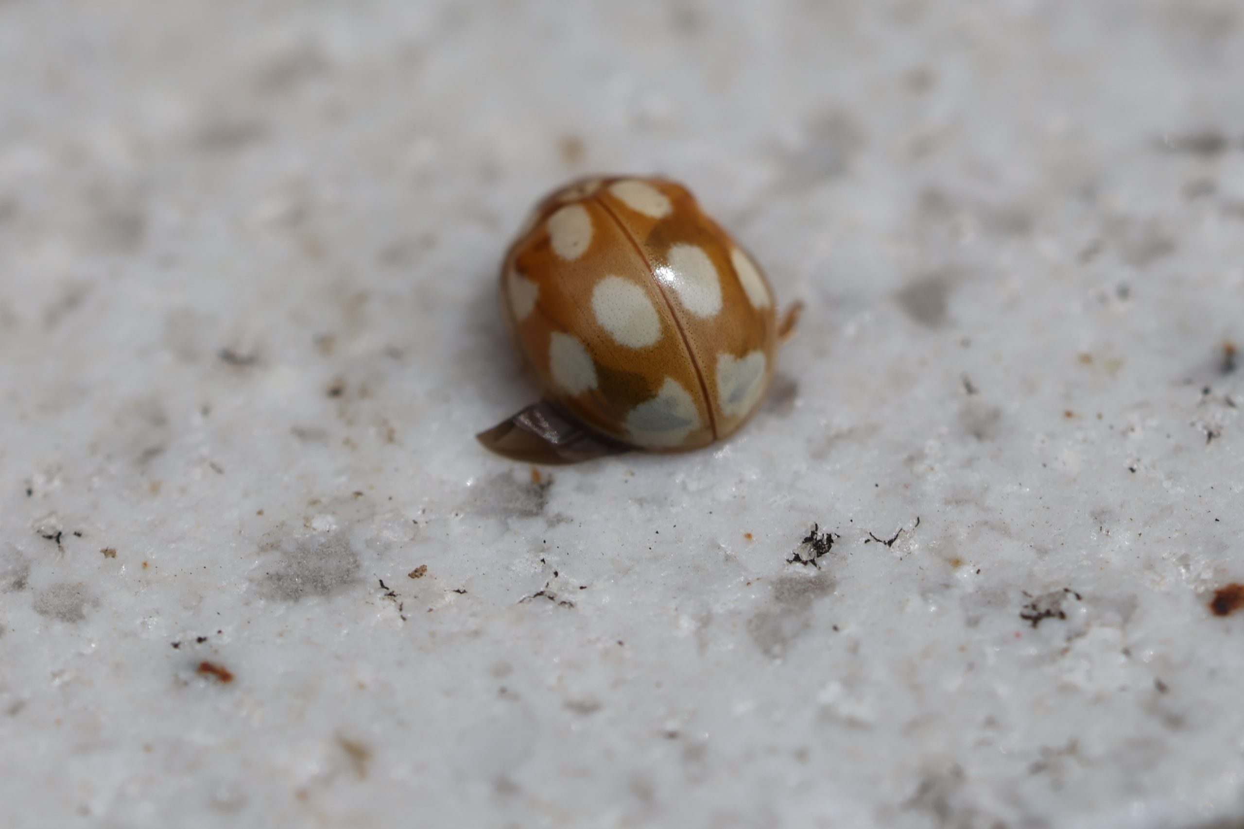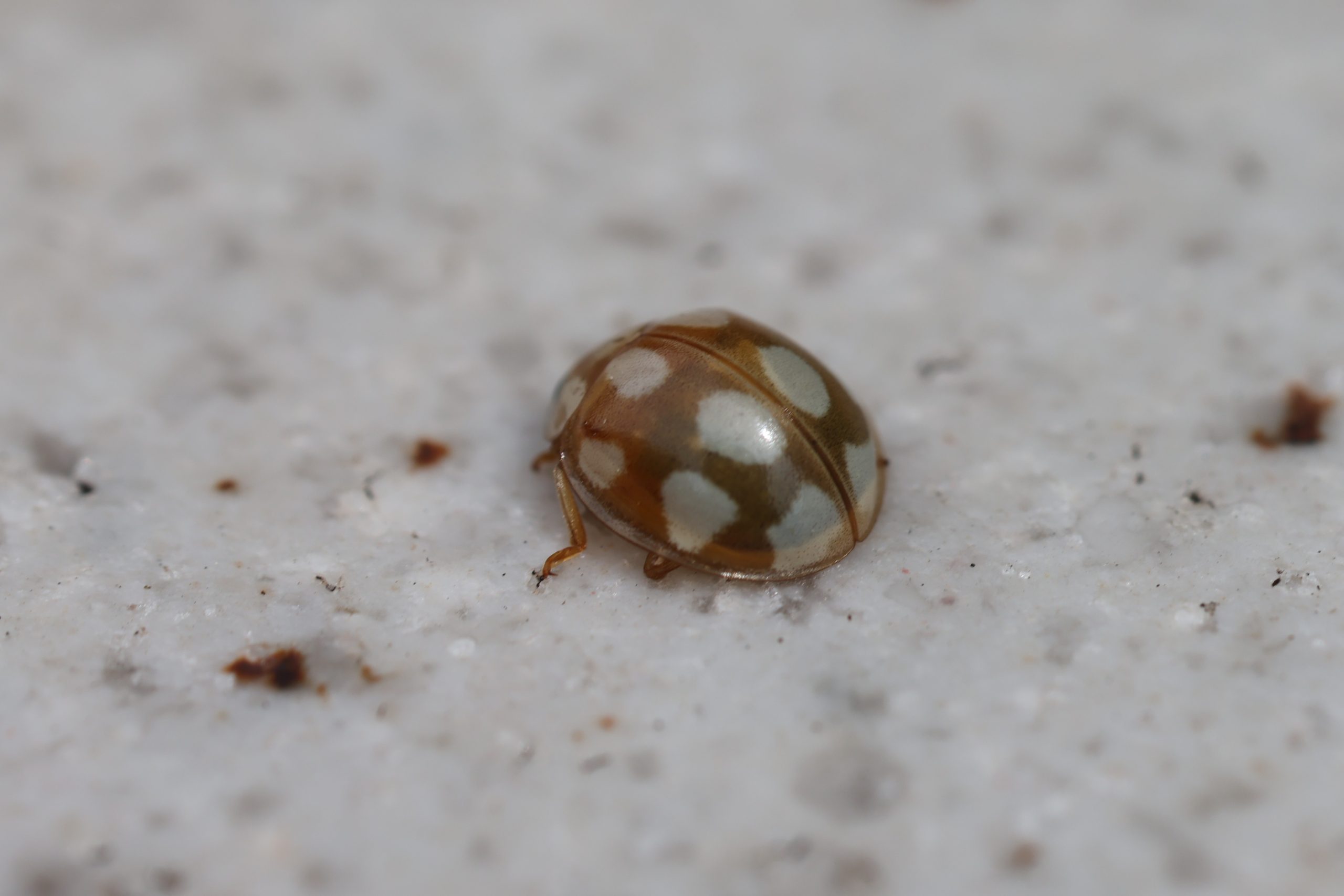 シロホシテントウ 2025年 兵庫県但馬地区の標高1000m付近の山中にて、ライトトラップに大量に飛来、ライトやスタンドのハードや線に群れを成して動いていた。 分布:北海道~九州 体長:3mm~4mm程度 コメントを残す コメントをキャンセルメールアドレスが公開されることはありません。 ※ が付いている欄は必須項目ですコメント ※ 名前 ※ メール ※ サイト 次回のコメントで使用するためブラウザーに自分の名前、メールアドレス、サイトを保存する。 数字で答えを入力してください:20 + 13 =
